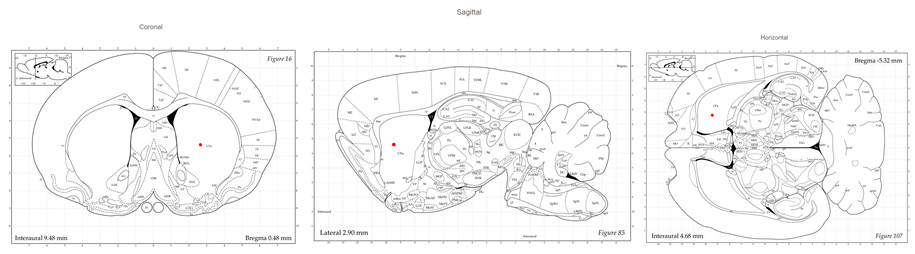 Atlas Source: Paxinos, George, and Keith B.J. Franklin. The mouse brain in stereotaxic coordinates: hard cover edition. Access Online via Elsevier, 2001. A tool by Matt Gaidica