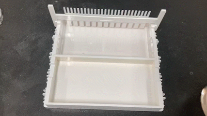 5. Mold를 깔고 comb를 꽂아준 뒤에 gel을 천천히 부어준다.