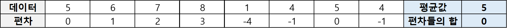 우선, 평균에서 데이터를 뺀 편차들은 더하면 0이 될 것이다. 따라서 각 편차들을 제곱하여 더한 후 n-1로 나눠준 값이 바로 표본분산이다. 표준편차는 분산에 제곱근을 취하여 얻는다.